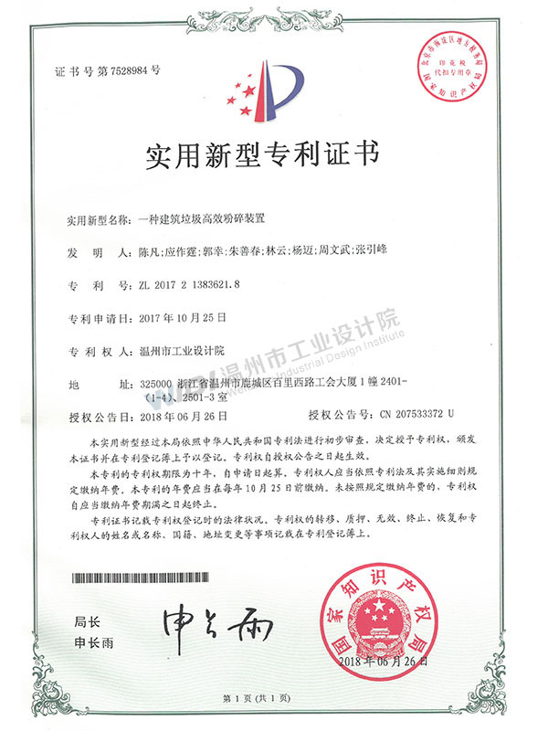 一種建筑工程用斷橋鋁合金門窗無塵鉆孔機(jī)證書