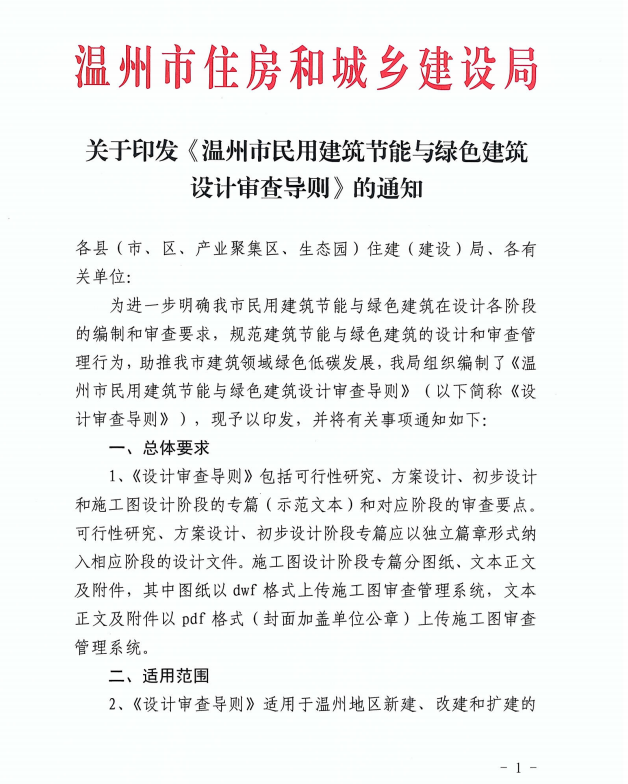 2022年7月15日,温州市住房和城乡建设局印发了由工业院负责编制的《温州市民用建筑节能与绿色建筑设计审查导则》,并将从8月15日起施行,标志着温州市绿色建筑设计进入新的阶段。...