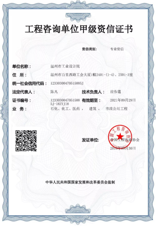溫州市工業(yè)設(shè)計院獲首批工程咨詢單位甲級資信資格