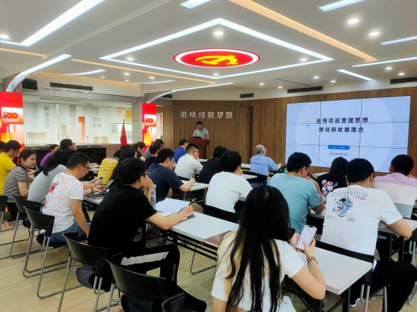 黨課內容主要圍繞項目管理在科學層面和哲學層面的理解,新發(fā)展理念的內容,以及如何運用項目管理思想來貫徹新發(fā)展理念來闡述的。吳家強指出項目科學層面包括項目的相關概念、組織影響、項目生命周期、項目管理過程和知識領域,哲學層面是從項目管理思想延伸至如何構建企業(yè)的管理和發(fā)展。要從戰(zhàn)略、運營、人力資源的管理上,以及企業(yè)文化、數字化建設上做好工作去推動企業(yè)的發(fā)展。有效的項目管理思想能提升企業(yè)的管理效率,因此要運用好項目管理思想,以新發(fā)展理念引領企業(yè)的高質量發(fā)展。